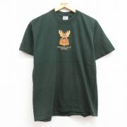 M★古着 半袖 ビンテージ Tシャツ メンズ 00年代 00s シカ ナイアガラの滝 刺繍 コットン クルーネック 緑