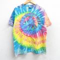 L★古着 ヘインズ Hanes 半袖 ビンテージ Tシャツ メンズ 00年代 00s ピースマーク コットン クルーネック 黄他 イエロー タイダイ 25may14 中古