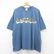 XL★古着 半袖 ビンテージ Tシャツ メンズ 00年代 00s ピーナッツ スヌーピー 雪 大きいサイズ コットン クルーネック 紺