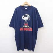 XL★古着 半袖 ビンテージ Tシャツ メンズ 90年代 90s ピーナッツ スヌーピー 大きいサイズ ロング丈 クルーネック USA製 紺