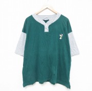 XL★古着 半袖 ビンテージ Tシャツ メンズ 00年代 00s スヌーピー ツートンカラー 大きいサイズ コットン ヘンリーネック 緑他 霜降り