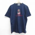 L★古着 半袖 ビンテージ Tシャツ メンズ 90年代 90s 星条旗 アメリカ コットン クルーネック USA製 紺