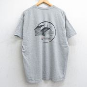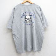 XL★古着 半袖 ビンテージ Tシャツ メンズ 00年代 00s スカル 魚 胸ポケット付き 大きいサイズ クルーネック グレー 霜降り