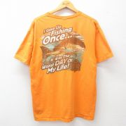 XL★古着 半袖 ビンテージ Tシャツ メンズ 00年代 00s 魚 コットン クルーネック オレンジ