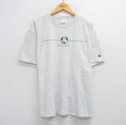 XL★古着 チャンピオン champion 半袖 ビンテージ Tシャツ メンズ 90年代 90s ノースイースタン ボロ 大きいサイズ ショート丈 クルーネック USA製 薄グレー 霜降り