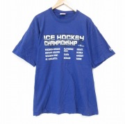 XL★古着 チャンピオン champion 半袖 ビンテージ Tシャツ メンズ 00年代 00s アイスホッケー 大きいサイズ コットン クルーネック 薄紺