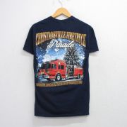 M★古着 半袖 ビンテージ Tシャツ メンズ 00年代 00s 消防車 CHRISTMASVILLE FIRETRUCK コットン クルーネック 紺
