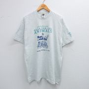 XL★古着 フルーツオブザルーム 半袖 ビンテージ Tシャツ メンズ 90年代 90s 犬 企業広告 クルーネック 薄グレー 霜降り