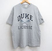XL★古着 半袖 ビンテージ Tシャツ メンズ 90年代 90s デューク ラクロス 大きいサイズ クルーネック グレー 霜降り