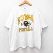 XL★古着 チャンピオン champion 半袖 ビンテージ Tシャツ メンズ 90年代 90s アイオワホークアイズ カレッジ 大きいサイズ コットン クルーネック 白系