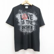 L★古着 ヘインズ 半袖 ビンテージ Tシャツ メンズ 00年代 00s LOVE ピースマーク クルーネック 黒
