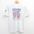 【商品名】 L★古着 半袖 ビンテージ Tシャツ メンズ 90年代 90s クジラ クルーネック 薄グレー 霜降り