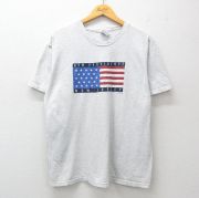 L★古着 ヘインズ 半袖 ビンテージ Tシャツ メンズ 90年代 90s 星条旗 ニュージャージー クルーネック 薄グレー 霜降り