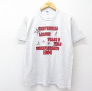 L★古着 ラッセル 半袖 ビンテージ Tシャツ メンズ 90年代 90s 陸上 チャンピオンシップ クルーネック USA製 薄グレー 霜降り