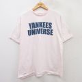 【商品名】 XL★古着 半袖 ビンテージ Tシャツ メンズ 00年代 00s MLB ニューヨークヤンキース クルーネック 薄ピンク メジャーリーグ ベースボール 野球