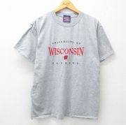 L★古着 半袖 ビンテージ Tシャツ メンズ 00年代 00s ウィスコンシンバジャーズ 大学 刺繍 クルーネック グレー 霜降り