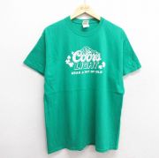 L★古着 半袖 ビンテージ Tシャツ メンズ 00年代 00s クアーズライト ビール コットン クルーネック 緑