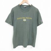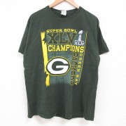 L★古着 チャンピオン champion 半袖 ビンテージ Tシャツ メンズ 00年代 00s NFL グリーンベイペッカーズ 刺繍 コットン クルーネック 緑 アメフト スーパーボウル