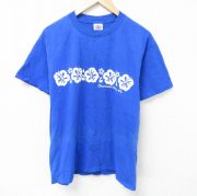 L★古着 半袖 ビンテージ Tシャツ メンズ 00年代 00s ハイビスカス コットン クルーネック 青