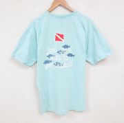 L★古着 半袖 ビンテージ Tシャツ メンズ 00年代 00s 魚 コットン クルーネック 薄水色