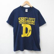 L★古着 半袖 ビンテージ Tシャツ メンズ 00年代 00s D コットン クルーネック 紺