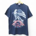 XL★古着 半袖 ビンテージ Tシャツ メンズ 00年代 00s 鳥 星条旗 コットン クルーネック USA製 紺