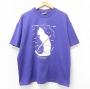 XL★古着 ヘインズ 半袖 ビンテージ Tシャツ メンズ 00年代 00s Cybercat ネコ 大きいサイズ クルーネック 紫