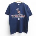 L★古着 半袖 ビンテージ Tシャツ メンズ 90年代 90s MLB デトロイトタイガース コットン クルーネック USA製 紺 メジャーリーグ ベースボール 野球