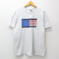 【商品名】 L★古着 ヘインズ 半袖 ビンテージ Tシャツ メンズ 90年代 90s 星条旗 ニュージャージー クルーネック 薄グレー 霜降り