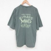 XL★古着 半袖 ビンテージ Tシャツ メンズ 00年代 00s 魚 大きいサイズ コットン クルーネック 薄緑 霜降り