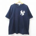 XL★古着 ナイキ NIKE 半袖 ビンテージ ブランド Tシャツ メンズ 00年代 00s MLB ニューヨークヤンキース コットン クルーネック 紺 メジャーリーグ ベースボール 野球