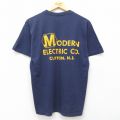 L★古着 ジャージーズ 半袖 ビンテージ Tシャツ メンズ 80年代 80s MODERN ELECTRIC 胸ポケット付き クルーネック USA製 紺 ネイビー 25jul24 中古