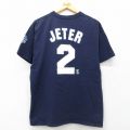 L★古着 マジェスティック 半袖 ビンテージ Tシャツ メンズ 00年代 00s MLB ニューヨークヤンキース デレクジーター コットン クルーネック USA製 紺 ネイビー メジャーリーグ ベースボール 野球 【spe】 25jul24 中古