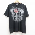 【商品名】 L★古着 ヘインズ 半袖 ビンテージ Tシャツ メンズ 00年代 00s LOVE ピースマーク クルーネック 黒