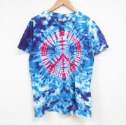 L★古着 ヘインズ 半袖 ビンテージ Tシャツ メンズ 80年代 80s ピースマーク コットン クルーネック USA製 青他 タイダイ