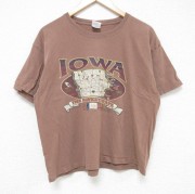 L★古着 半袖 ビンテージ Tシャツ メンズ 00年代 00s アイオワ コットン クルーネック 薄茶 0