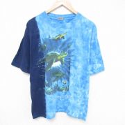 XL★古着 半袖 ビンテージ Tシャツ メンズ 00年代 00s カメ 大きいサイズ コットン クルーネック 水色他 タイダイ