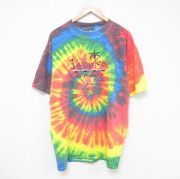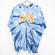 XL★古着 半袖 ビンテージ Tシャツ メンズ 00年代 00s コットン クルーネック 青他 タイダイ