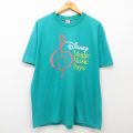 XL★古着 半袖 ビンテージ Tシャツ メンズ 90年代 90s ディズニー DISNEY マジックミュージックデイズ コットン クルーネック USA製 青緑 25jul23 中古
