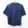 【商品名】 L★古着 半袖 ビンテージ Tシャツ メンズ 90年代 90s 無地 胸ポケット付き クルーネック 紺【spe】