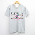 L★古着 半袖 ビンテージ Tシャツ メンズ 80年代 80s フロリダ ヤシの木 ヨット クルーネック 薄グレー他 ボーダー 25jul25 中古