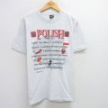 【商品名】 L★古着 HAGGAR 半袖 ビンテージ Tシャツ メンズ 90年代 90s POLISH メッセージ コットン クルーネック USA製 薄グレー 霜降り【spe】