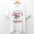 【商品名】 L★古着 ヘインズ 半袖 ビンテージ Tシャツ メンズ 90年代 90s パワーリフティング 鳥 クルーネック USA製 白