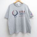 XL★古着 半袖 ビンテージ Tシャツ メンズ 00年代 00s USAロゴ 北京オリンピック 大きいサイズ クルーネック グレー 霜降り 25jul25 中古