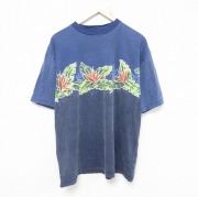 XL★古着 ノーティカ 半袖 ビンテージ ブランッド Tシャツ メンズ 90年代 90s 花 コットン クルーネック USA製 紺