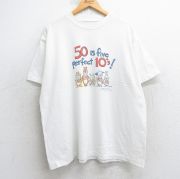 XL★古着 半袖 ビンテージ Tシャツ メンズ 90年代 90s クマ ウサギ 犬 大きいサイズ クルーネック 白