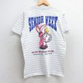 L★古着 半袖 ビンテージ Tシャツ メンズ 90年代 90s ウサギ シニアウィーク クルーネック USA製 白他 ホワイト ボーダー 【spe】 25jul29 中古