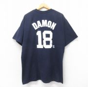 XL★古着 マジェスティック 半袖 ビンテージ Tシャツ メンズ 00年代 00s MLB ニューヨークヤンキース ジョニーデーモン 18 大きいサイズ コットン クルーネック 紺 メジャーリーグ ベースボール 野球