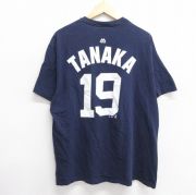 XL★古着 マジェスティック 半袖 ビンテージ Tシャツ メンズ 00年代 00s MLB ニューヨークヤンキース 田中将大 19 コットン クルーネック 紺 メジャーリーグ ベースボール 野球