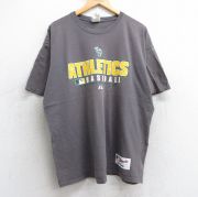 XL★古着 マジェスティック 半袖 ビンテージ Tシャツ メンズ 00年代 00s MLB オークランドアスレチックス 大きいサイズ コットン クルーネック 濃グレー メジャーリーグ ベースボール 野球